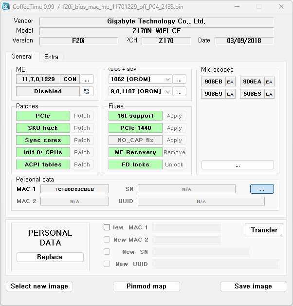 CoffeeTime 0.99 — Download — ----- Mirror ----- - Added 16-threaded CPUs support for any s1151 22nm boards (method provided by @dsanke ). - Added fix to remove “ME abnormal” warning on MSI boards with disabled ME. (also by @dsanke ) - Added fix for